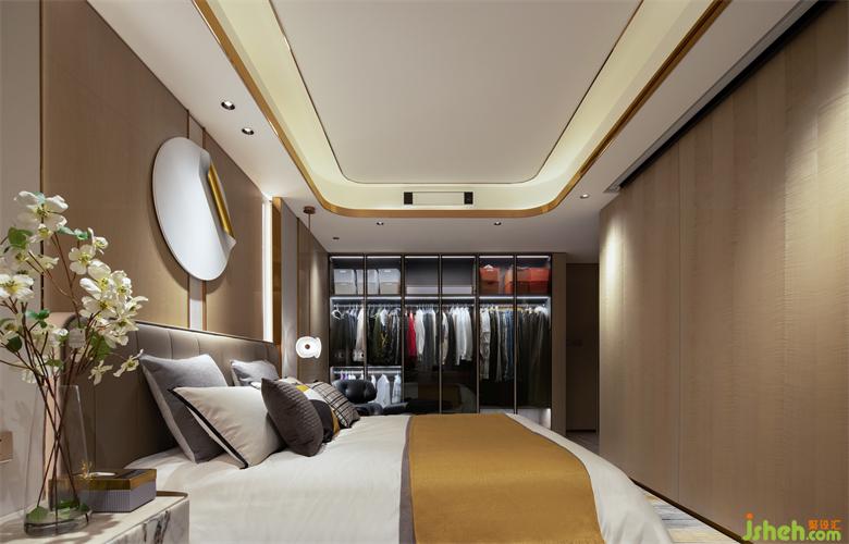 圍繞男女主人對品質生活的訴求,展開主臥空間的功能分區,納入大容量衣櫃。大平层装修设计以自然之物襯托空間氛圍,促進人與空間更好的互動。