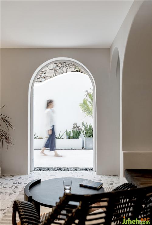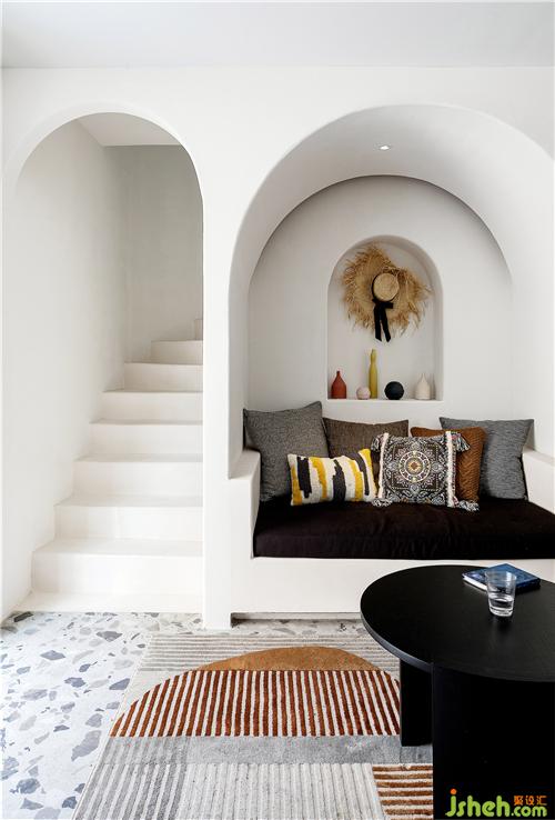 时间在空间中的关系,随着室内的建筑感变得充满戏剧性,予人的感觉恍如身临地中海的城堡中,体验一种异域的浪漫风情。
