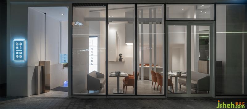 “环绕的玻璃肋已经为我们的‘柱林’形成了第一阶段的包裹感与层次感,与我们在内部因为道路系统设置的‘柱林’形成的其他层次叠加在一起,很容易让人模糊室内与外界的边线。”这种模糊,无形中放大了空间的场地与氛围,视线上通透的用餐环境也会让人有种开阔与放松的心境,从而把人们的注意力引到品味牛排本身上来。餐厅设计