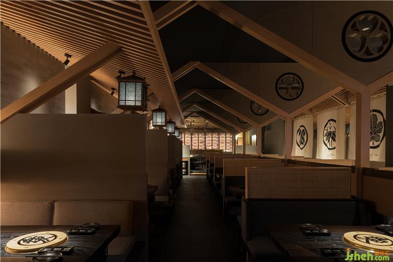 考虑到人在空间中的感受与体验,公共餐区的设计别出心裁,采用狭窄的廊道隐喻都市建筑丛林中的街道意象,让顾客置于温馨的市井气息中。而坡屋顶的叠级构造,演绎出独特的日式景观氛围,为人们带来差异化的空间体验。餐厅设计