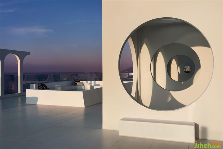 圆形、半圆形、方形等几何构图各自是单一的景框,并置于空间后,精品酒店设计组成了立体化、戏剧化的美学尺度。