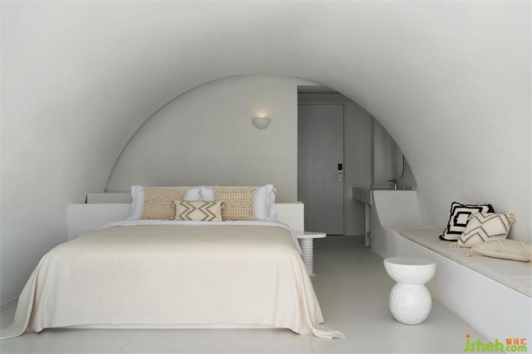 艺术源于生活,又高于生活。埂上设计向来擅长勾勒极简艺术的丰沛,一道弧线便是一扇景观窗口。空间中的一应家具、床品均是纯粹素净的白,精品酒店设计令材质的肌理在细腻与粗粝之间发生着对话,当光影穿过门洞,点、线、面的结构关系更显现出别致的趣味性。
