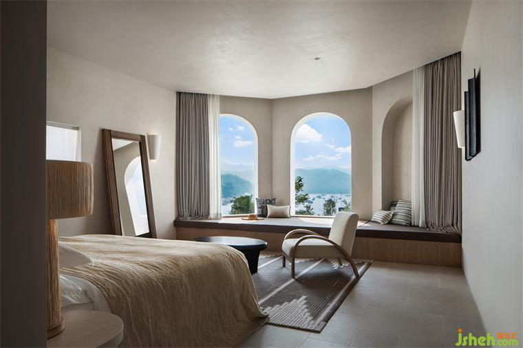 在蓝白圣岛的空间规划中, 设计师将原本25个房间各自规划了不同的房型,并为每一栋设置了独立的起停空间,真正实现了“一房一景”的微妙变化,蜜悦悬崖泡池美宿设计以设计为品牌价值的最大化创造可能,酒店设计为品牌后续运营和复购做足了思考。