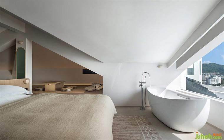 童年对于任何人来说都是最愉悦轻松的记忆,蜜悦悬崖泡池美宿设计在城市度假定位之上进行调研,为亲子度假的群体需求做了细致温暖的思考。三角斜顶造型、极具趣味性的窗户、日式榻榻米,妥帖的复刻了记忆中的童年角落, 装点出关于童年记忆的阁楼梦。