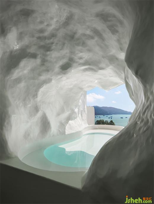 云海之上,时光悠长,空间赋予旅人安静的力量,在山海之间一池悬崖之上的洞穴泡池中拥抱生活与理想,从庸常的生活中抽离,酒店设计在静谧的自然之中感受于己的爱意与尊重。设计师以善意的设计语言让旅人和自己相遇。