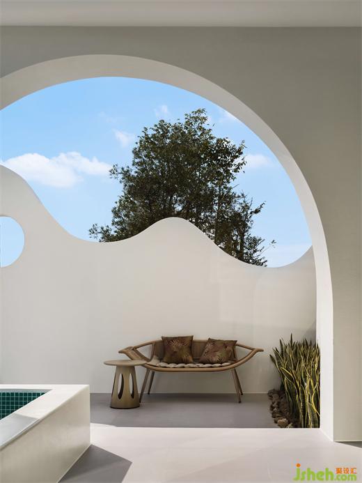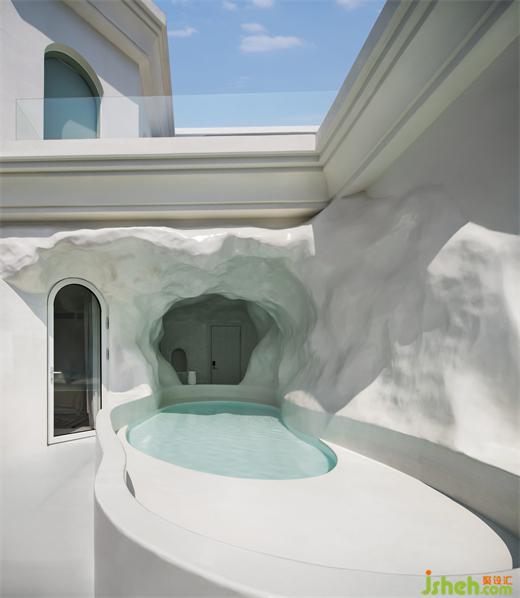粗犷绵延的洞穴浴池连接室外的山海,私密而通透。临池而坐,眺望远山与海,在此刻的静谧中感受与自然相处的喜悦,蜜悦悬崖泡池美宿设计带着近似冥想的心境也慢下来,共同感受当下安静的力量。