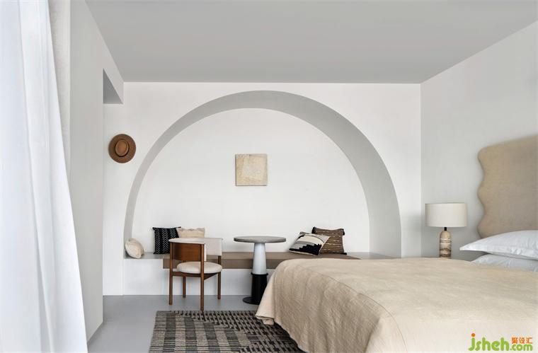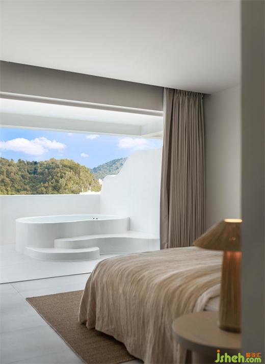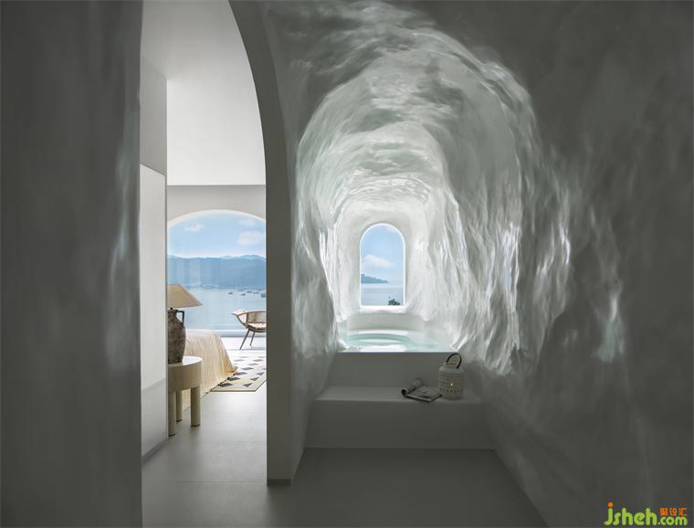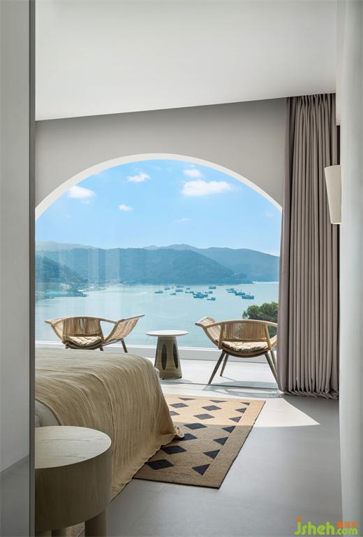在一汪碧蓝之中凝望山海,那些我们留在时光中的遗憾和深藏在记忆深处的故事,都将在此时被缓缓讲述,此刻没有人是一座孤岛,酒店设计空间以一种具象的存在温暖的陪伴旅人获得前行的力量。
