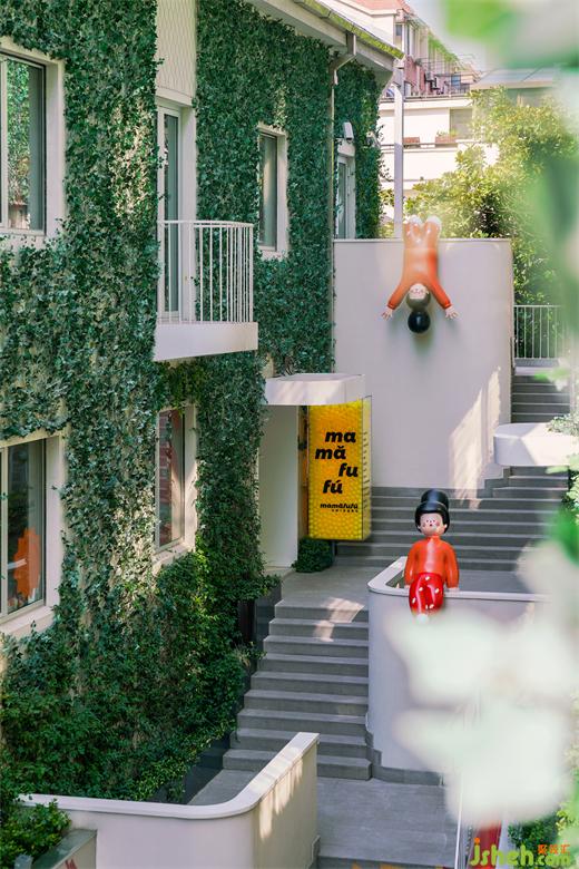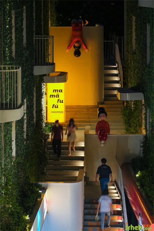 随着动线前进,充满生命力和活力的色彩元素与绿意不断涌现,轻快的色彩表达也唤醒了老上海人的童年回忆。