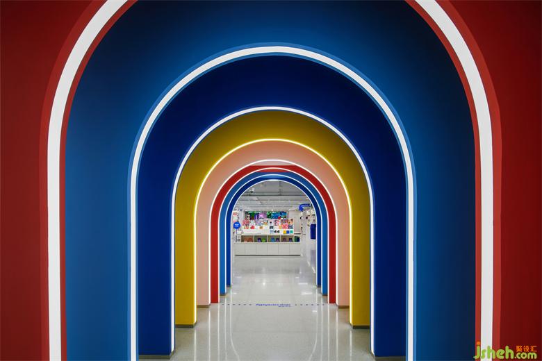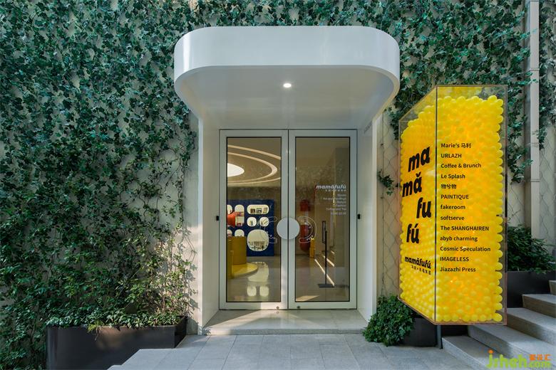 若未选择乘坐电梯到达上层空间,则可跟随徐缓而上的线条至mamǎfufú入口。上海M+马利 mamǎfufú超级百货设计透明玻璃柜体箱上呈现着空间内部的品牌,而被设计者构建的这方色彩伊甸园,才刚刚开始。