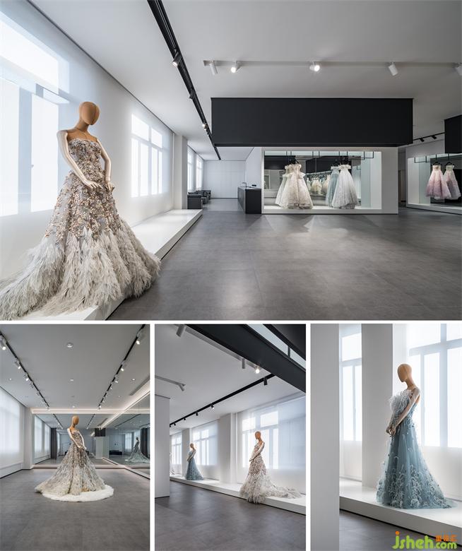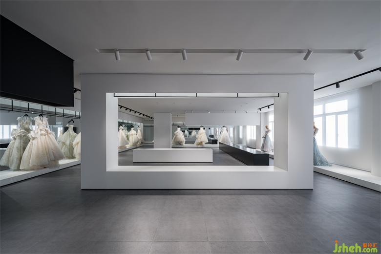 礼服展厅设计以空间为落脚点,表达由表及里,为商业形态赋予不同维度的价值,从共性契合,定义空间内容,到创造场景,传递品牌的内在精神……