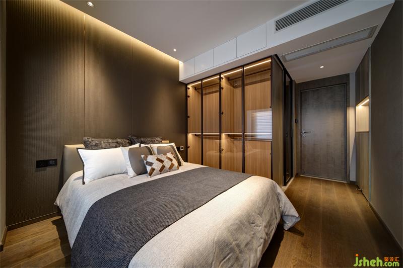 主卧装饰设计同款定制玻璃扇门衣柜,