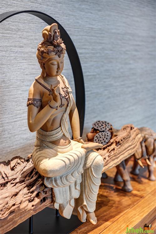 红酒房的设计轻奢豪华,又加入中式的禅佛意象,两种风格碰撞,是不一样的味道。