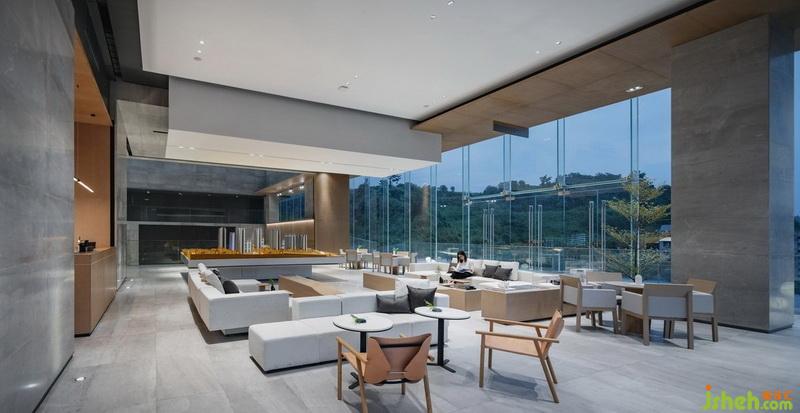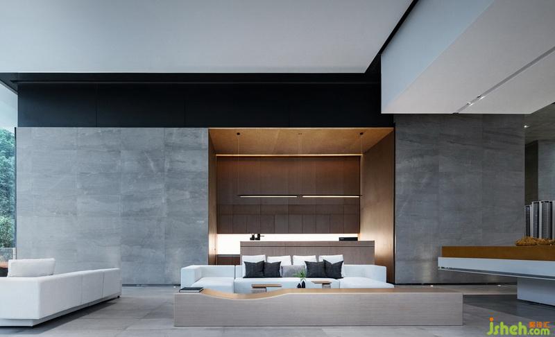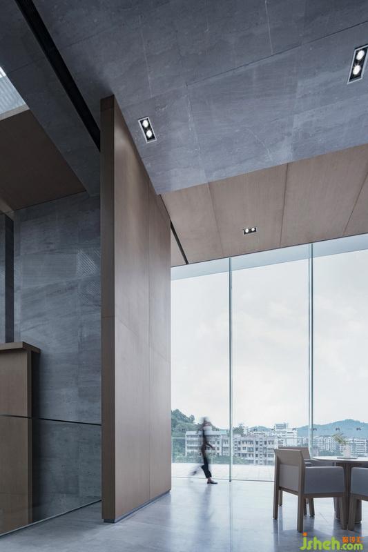 在空间的处理上,设计师着眼于明确空间秩序的建立和动线的清晰,去黼黻而存朴素,利用材质在自然光照射下的不同状态、颜色的对比,以及通过材质对自然光进行雕刻,既丰富空间的层次,又在心理层面上弱化了建筑体量产生的影响,将人的视线由内及外时,产生置身山水,开门见山,无论身处何处,皆与自然有交集的状态。