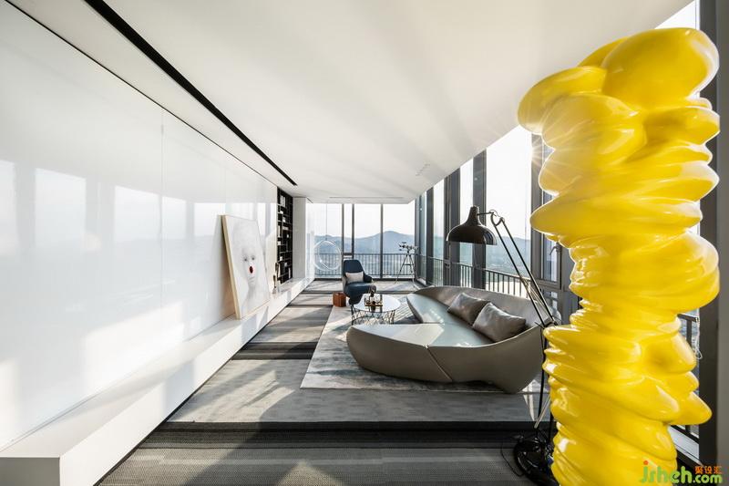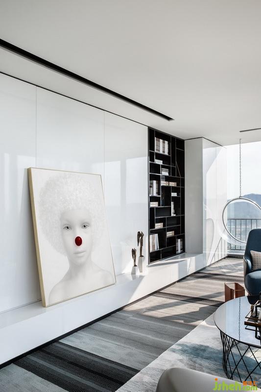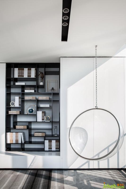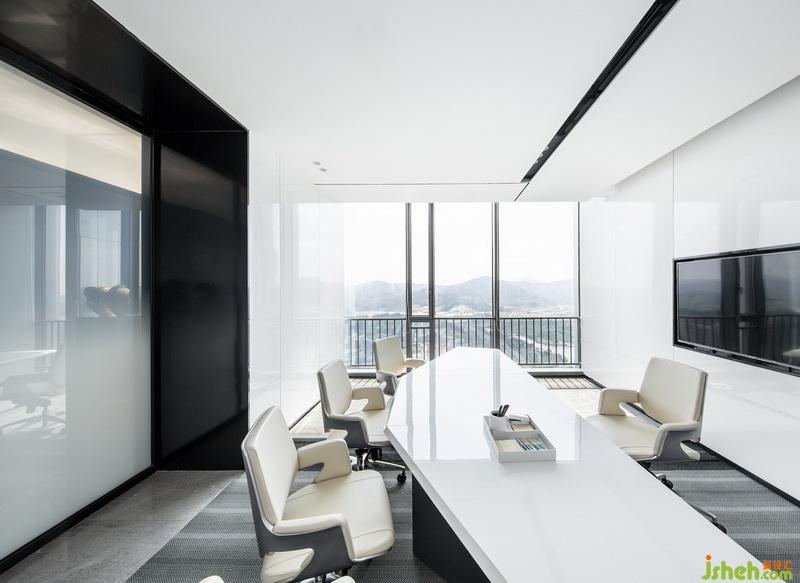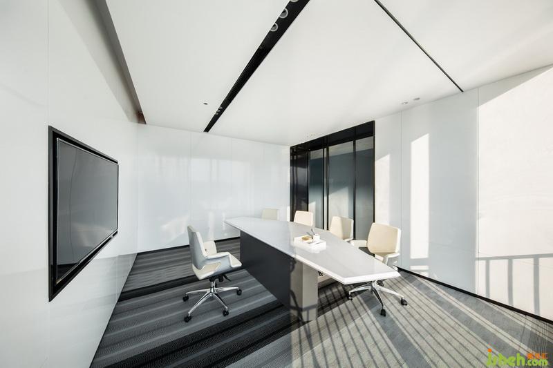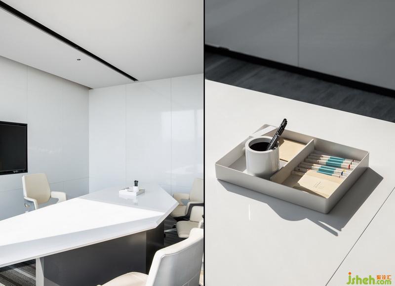 作为立意的基点“天光云影”并不能生硬的搬到室内。同时,把窗外景色尽可能引入到每一个办公位又成为设计的课题。作为办公空间的常态,不到一定层级,大抵都是终日向隅一隅。设计师深谙其苦。综合环境和人文的需要,在呈现空间状态的设计中,设计师不纠缠于琐碎,而是大刀阔斧利用重新建构的框架的基础面形成的线条作展开。在色调上,设计师以白为基调,以材质赋予其形成微妙的异同状态,利用光的变化和重颜色的点线丰富空间形态。设计师在设计过程中,将空间当作一个素而稍显斑斓的观景空间加以考虑,使用适量的绿植穿插其间,以与户外天然作情态上的呼应。在空间结构重新整合之后,呈现出抬头即眺远,在使用者心理层面唤起“天光云影”的印象,调节使用人士在该空间的心理状态。