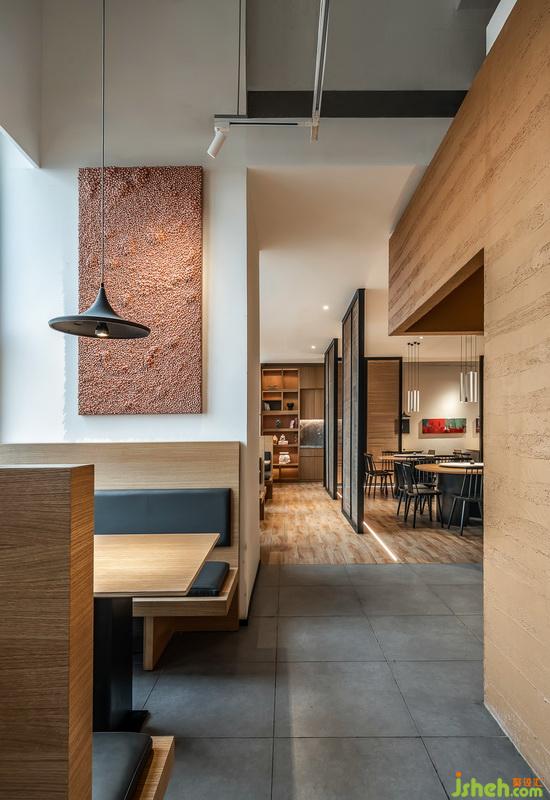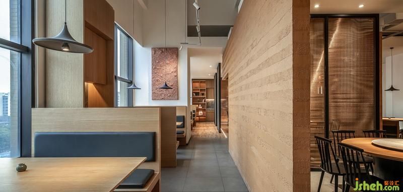 南方乡下在普通人心理层面形成的印象是什么?当然是“润”。去过南方乡下的人,一定见过那些用版筑的方式制成泥砖后最常见又最廉价的农居。设计师以此作为空间的材料基点,让色调与肌理形成有内在联系的呼应,在都市中带入农居的概念。