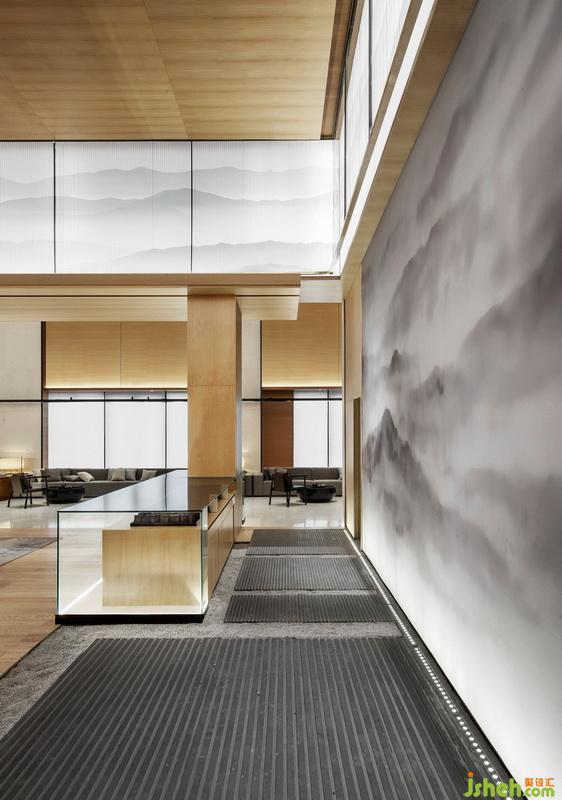 一个空间,尤其是有足够体量的时候,要让人一见即惊叹,实在不是什么难事。而要将同样大体量的空间,做得让人一入而有被拥抱的温软感觉,那就不容易了。因此,设计师在考虑方案内涵形成的过程中,仍然承接乐天哥诗中的自然形态,只是由“远”及“近”,由“外”入“内”,将自然光引入到室内,使诗中明媚的“动”的生气一转而为温馨的“静”。