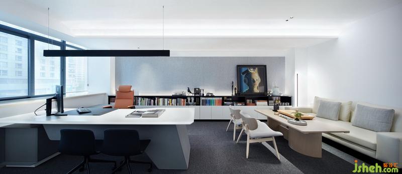 在后区(工作区域)的设计中,设计师则把握住功能流线、秩序清晰,空间简洁、干净的原则,用较为克制的适度设计与根据现有空间条件对症下药的轻量介入理念,只保持为公司人员习惯好用的常态化格局。使大家在搬迁之后不必花费太多精力去重新适应环境,而能迅速安心的投入工作。尽可能的开放式办公能保持各部门之间的高效运转。