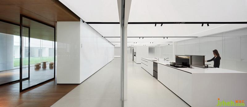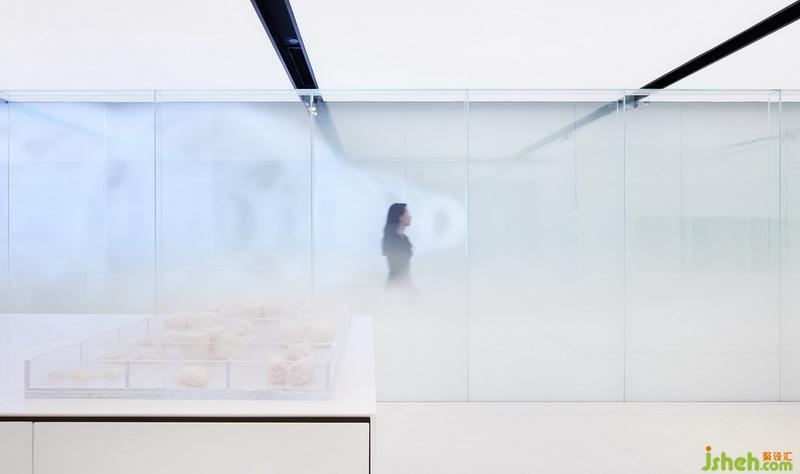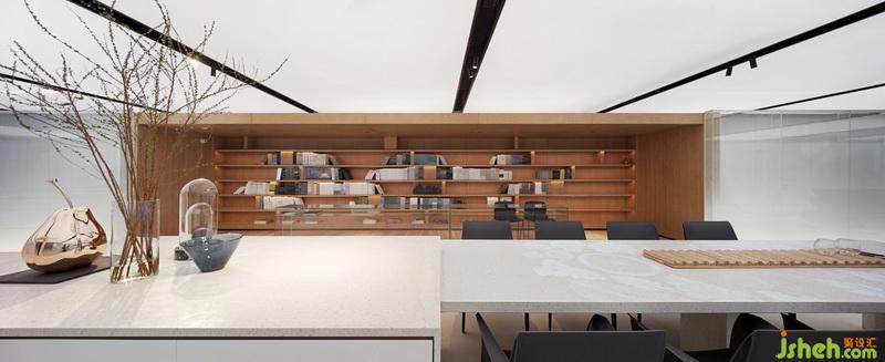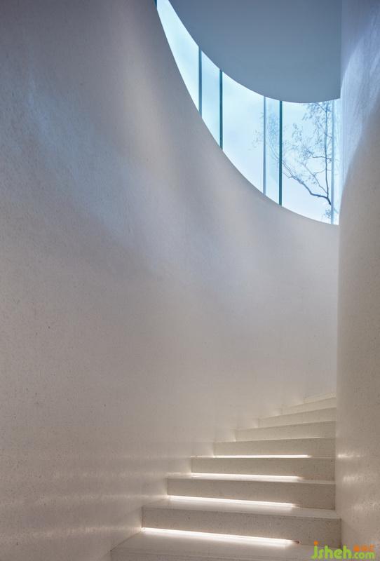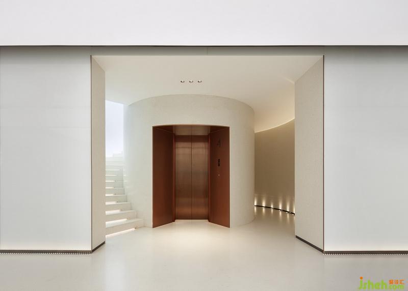 设计师在空间的整体处理上,因地制宜,将整个空间理解为一幅徐徐展开的手卷,以青砖粉壁为基调,两种材质的肌理和色差做反向对比,青砖与水磨石的对话,表达“不用粉染,以云山为墨戏”的南宗山水情态,使空间尽量虚和萧散,天真幽淡。而这也是对苏南地区几百年审美精髓的溯源。在处理平行视觉的同时,设计师并没有忘记对仰视视觉应有的把握。中国人讲味道,首在“盐梅”,把握得合适,寻常之物便能体现神奇——在各功能空间部分,设计师将太湖石的孔洞与风景作为理念,用简洁的手法联系在一起,不多做渲染,意到即止。地上部分,用悬浮的巨石启迪未来。