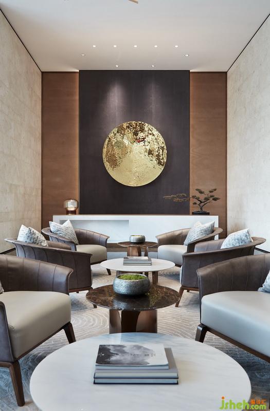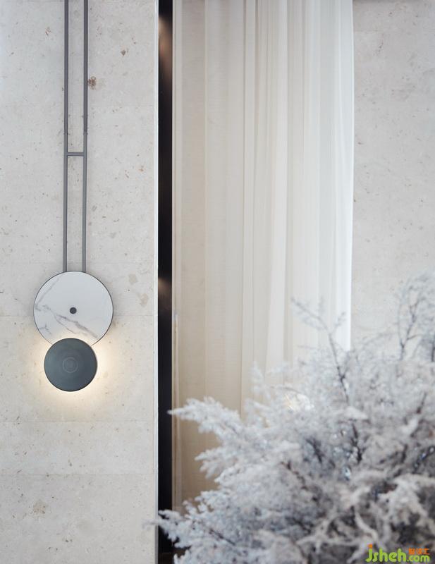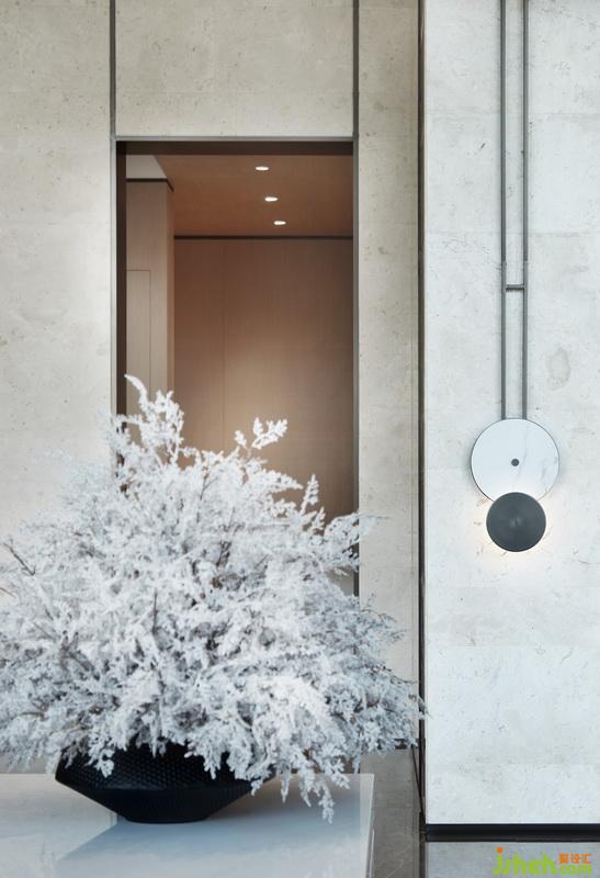 在花艺的臻选上,设计一以贯之,选用了那些白色的、蓬松的花材,好像在来的路上随手采拾的芒花被安插在此处,与空间中无处不在的白色器皿,形成色彩记忆的串联,在洽谈区尽头圆形的金属墙面装置,则回应了白花的金属纽带。这些细微之处,正是设计理念通达人心的关键。