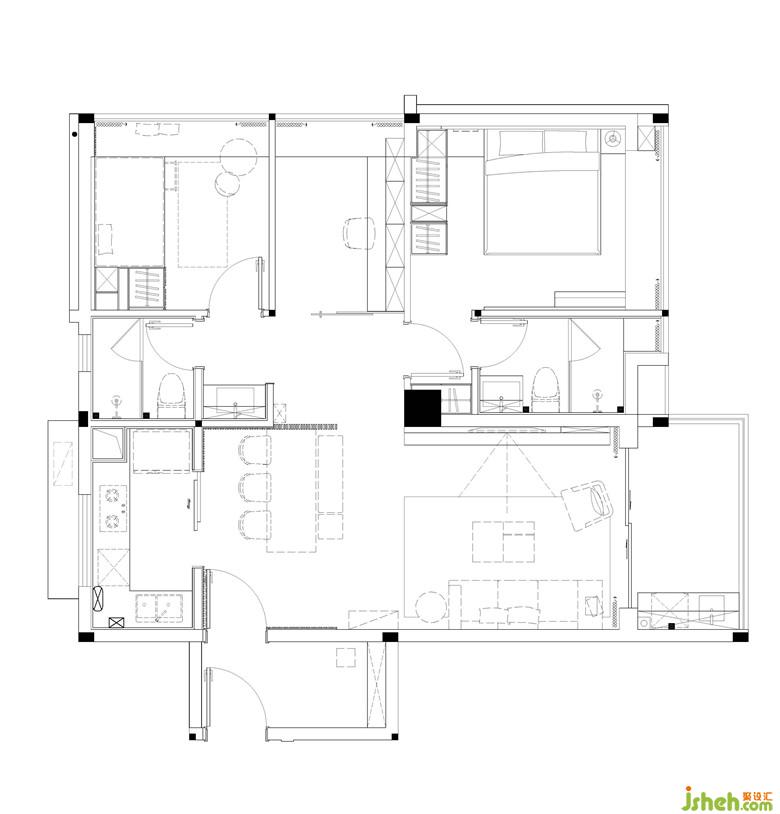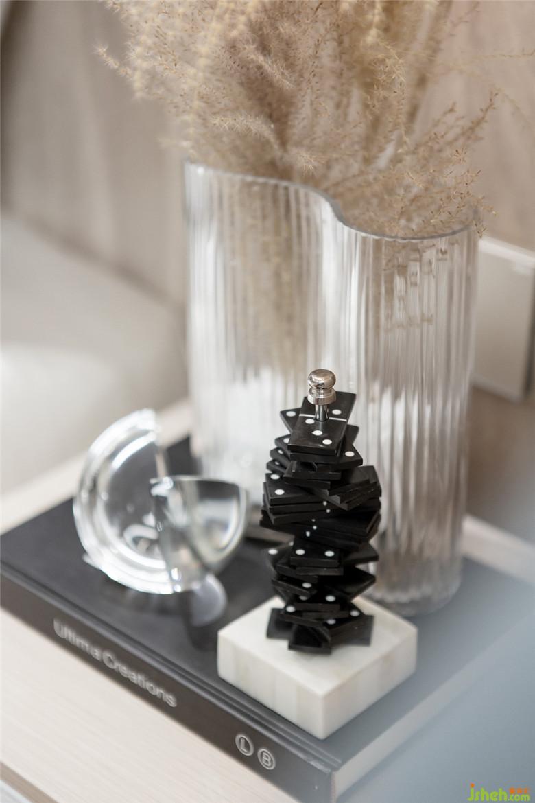 白色棉麻与不同质感的灰度交织,并适时融入淡淡的灰蓝绒面质感,穿插少量黑色线条,材质和色彩之间轻柔过渡。