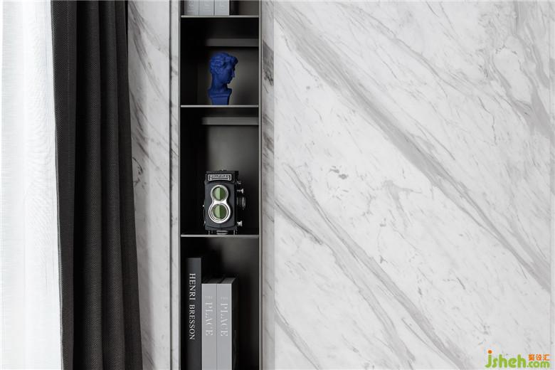 一层是“房东”摄影师,喜欢用影像记录生活,崇尚极简,善于把握色彩之间的强烈对比。由此而生,他的居所由黑白的强烈冲撞构成主要个性,再用木饰面柔和此间的冲突。亮眼的钴蓝,以不同的体块、质感和灰度循序渐进地导入。