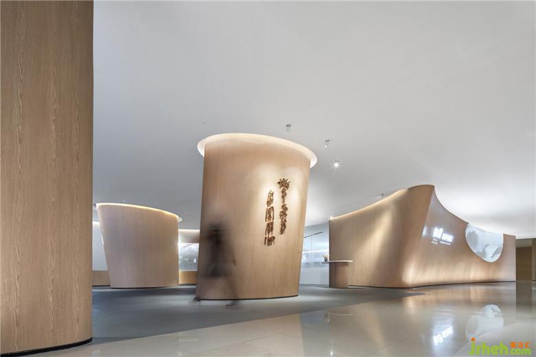 设计采用了流线型的大开大合的空间处理,设计手法与风格相对平和,空间层次主要由木与浅灰两色成就,大体量承重墙恰如屏风,开放的空间因而多了“隔”趣。曲线是流水的抽象形态,木与浅灰是东方自然色,隔与不隔蕴合传统审美意趣,符号化的意象被设计师隐晦化,潜藏在现代合理主义独有的清冷中,超越司空见惯的传承技法,将理性的、感性的、社会的存在方式统一到设计中。