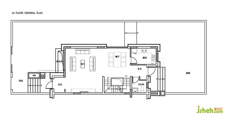 在一层客餐厅,基于双入口设定,我们改变客厅原对称性布局,重新排布,优化动线,用主沙发和大茶几来创造稳定面,产生主次关系和空间节奏。打开封闭式的厨房,与客厅隔着餐桌形成对望,家人与朋友在烹饪、用餐时有了更多的互动和趣味。