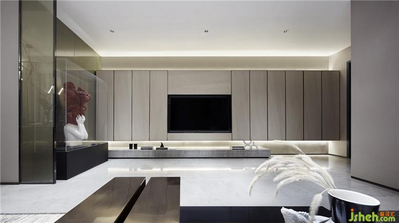 主要材料:高雅灰大理石、墙布、夹丝玻璃、砂面不锈钢、木饰面、烤漆板