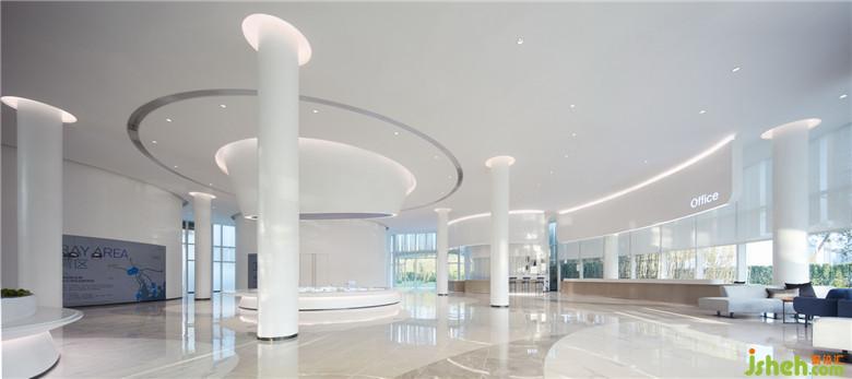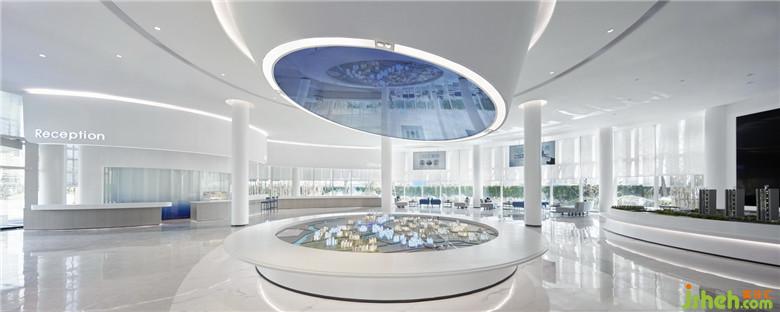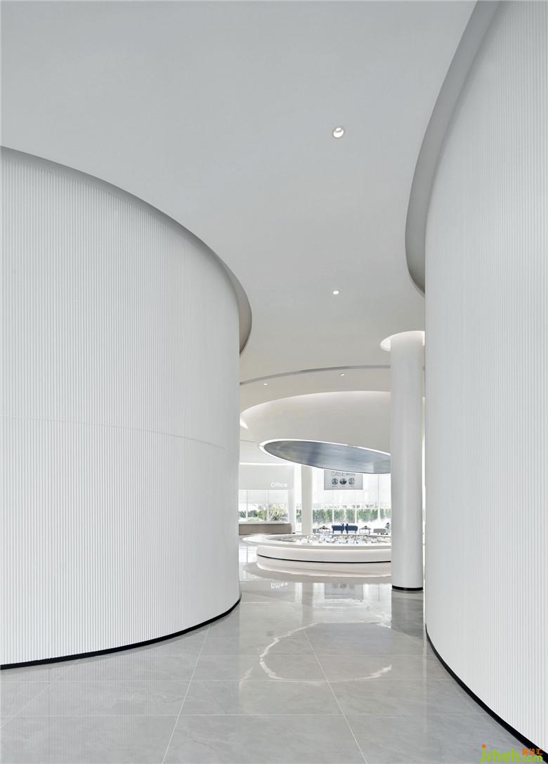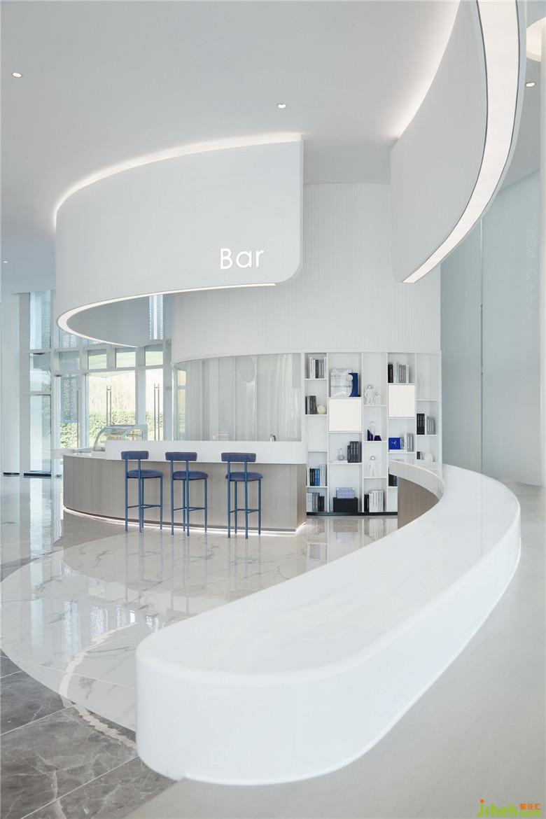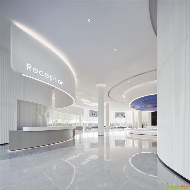 遵循灵活简洁的原则,整体空间采用弧形和环形的创意造型设计,严格挑选色彩进行构建,天花与墙面采用留白手法,把空间的主体留给体验者。云白色作为主色调,既贴合天空与科技的主题,也符合人们追求极简的时代情绪——极简只是手段而非目的,断舍离是为了腾挪出更多的空间容纳更高级的思考。