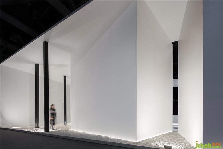 2019年广州设计周上,冠珠陶瓷联合共生形态,举办了一场关于物质本源的展览。展览结合设计周“新生”的主题,借此提出 “回归本源,折射新生”的策展。 在300㎡的概念空间中,设计师使用了特别定制的179块纯白岩板。纯白象征着瓷砖最原始的模样,设计师通过去物质性的设计手法希望人们不要再去过度关注瓷砖的装饰性以及通过现代喷墨印刷技术所呈现的对其他装饰材料的模仿,真实地感受瓷砖材料的本质。