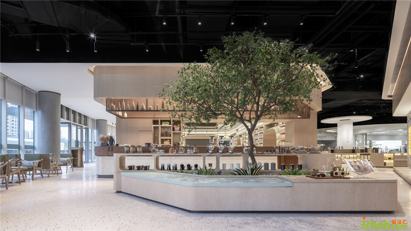主要材料:水磨石、木地板、木饰面、耐候钢
