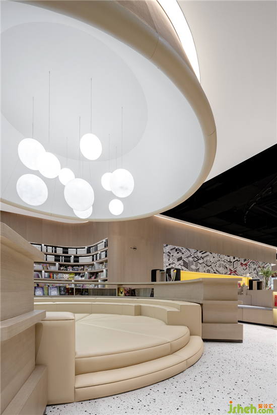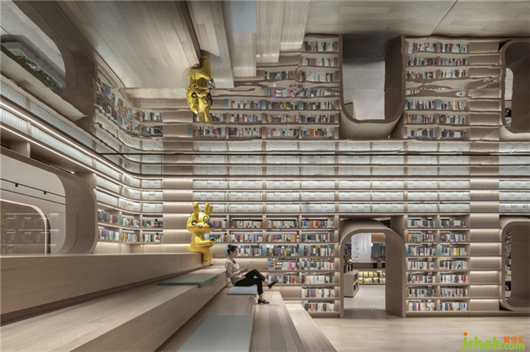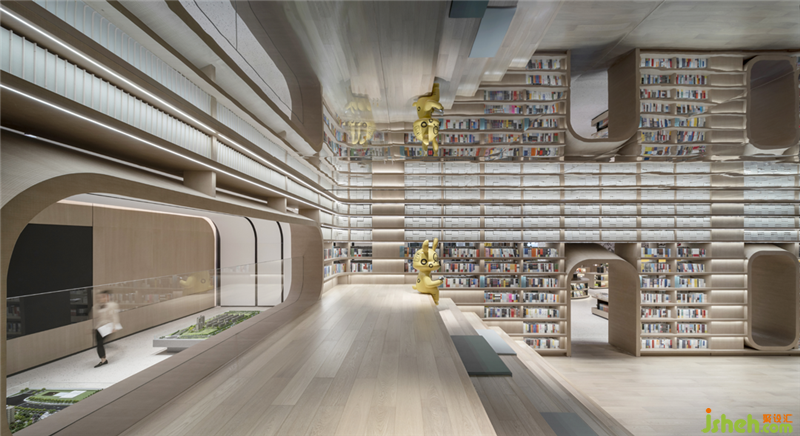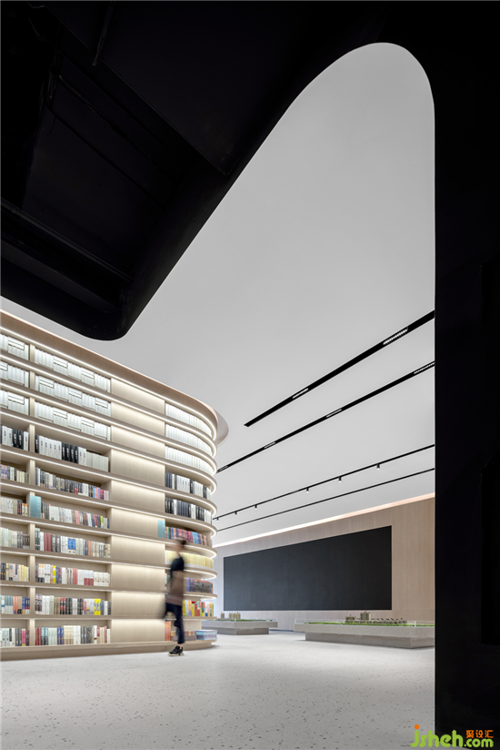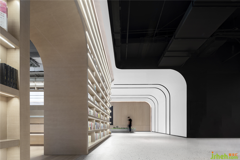 视觉之上,空间的灵魂、场所的氛围才是设计的关键所在,对于销售空间,视觉冲击力过强不利于产生人的停留,因此在本案中,设计舍弃了室内强烈风格化的表达,借由场景的营造,将叙事融入到空间设计当中,以此完成空间与人的行为、体验之间的联系。图书馆设计
