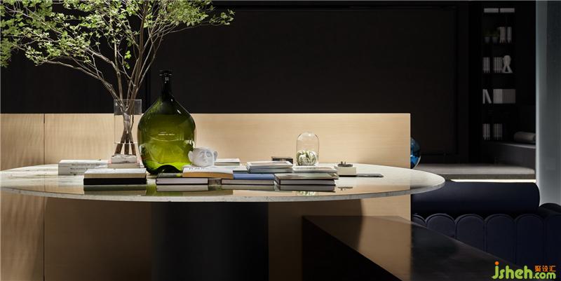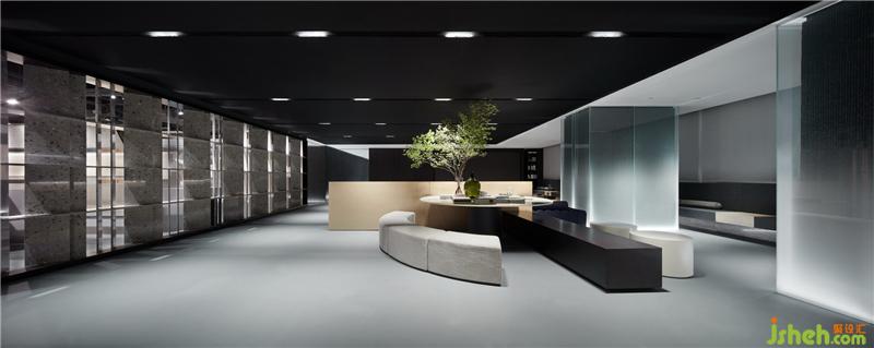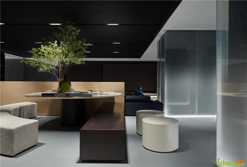 到了产品展示区,不同材质构成的人形艺术装置,恰如其分地融合于环境中,即人与环境的共融共生。最后,通过人造材料及天然材料的结合,形成材质的对比和层次,表达对人与自然关系的反思,亦是对画王大理石品牌主张的回应。