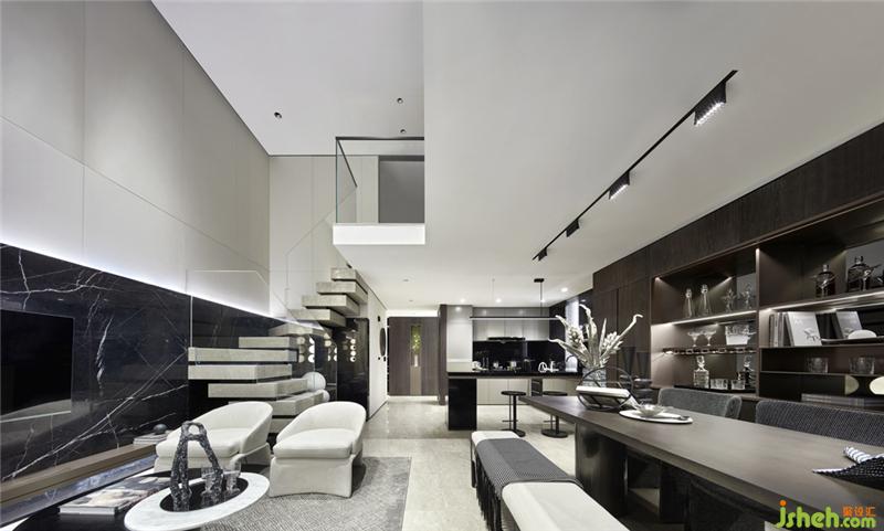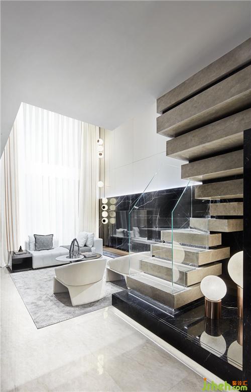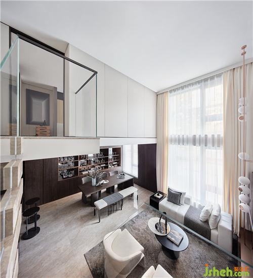 开放式的Living room,起居与卧室上下分布,和平层住宅产品不一样的居住体验。