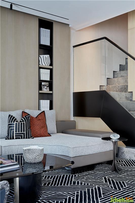 津河名邸别墅的整个基调是疏朗透明的,错层结构的出现让空间的重叠和交织变得有趣而耐人寻味。我们将夹层部分做为儿童专属的天地,希望孩子们能在相对开放的空间中与居室中的生活动定保持自然的接触。