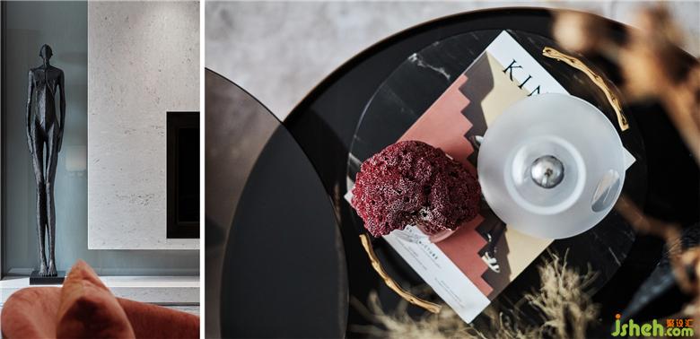 如此一来,我们没有理由不对音乐、文学和设计等抱有同理的猜想——以重构、改造、再创作为蓝本的居住空间设计之所以有吸引力,首先要有氛围。形成氛围意味着调动人的参与,当人走入到空间之中,便打破了空间的孤立与静止,犹如穿梭的连接线,重新拉扯空间与人的各种关系——所以在样板房的设计中,设计师可能并不关注某个人或某群人举手投足,而是需要将一些动态而活跃的生活片段剪辑进空间内部,延伸进设计构思的过程中去,如此,观看方式成为由内而外的扩张式,引发的想象也更具弹性。