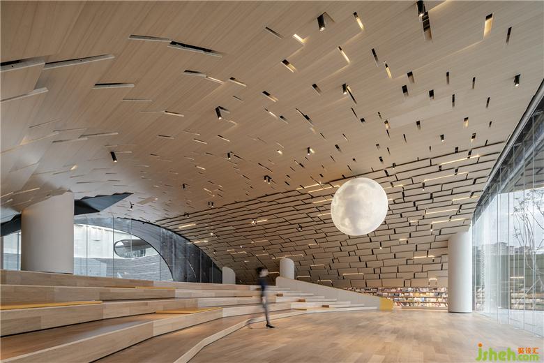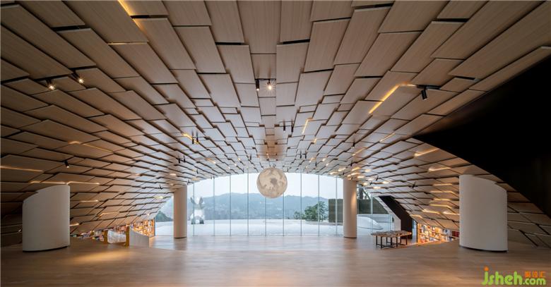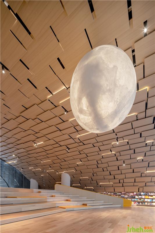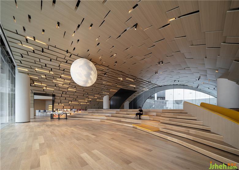 设计师认为,将时间与记忆带入室内空间之中,也让空间有了垂直意义的联系。售楼处设计空间至下而上分别带入“童年记忆”、“儿时憧憬”和“美梦成真”的三个主题,分别对仗“听涛”、“望山”、“观星”三种空间体验,因此,也就有了“枕草望月萤火飞,遥看星河叹流年”的空间感知和诗意表达。建筑立面的解放让室内外空间相互渗透与融合,自然色调和特性的材料选择更充分的表达出场域特征和居住精神,让人在瞬息万变的时空之中,体验生活和自然之美。
