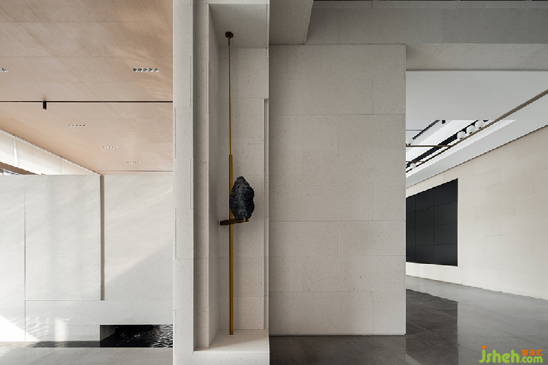 橱窗式“框景”,一方面破除里外的分界,同时建立起里与外的衔接;另一方面所“框”之景暗合曲水流觞的叙事,触发观者对空间的思考和探索的兴趣。园林通过玻璃幕墙渗透到建筑的内部,建筑怀着开放的姿态将自身向景观敞开,彼此互为映衬,相得益彰。
