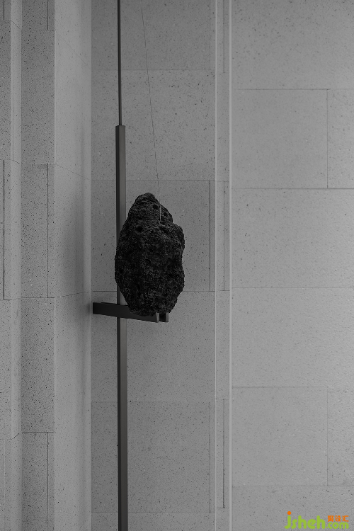 从原石,到半成品石,再到人造石板,售楼处设计师以材料建立起三重时间的演进。接待台的砖体晶莹里泛一点黄,如同稻米映照在阳光之下。砖体相对脆薄,采用室内装修的手法拼砌,砖体必不能承其重,因此改用建筑手法排砌,意外使得砖体质感更显。走廊转角处,设计师原想开一个面东的天窗,让光影可以流转,囿于客观条件未能实现。改而研发出一种水泥板,以创造从明亮到柔和的漫反射光线。水泥板采用交错咬合的方式搭砌,交接处可清晰见到材料的厚度。
