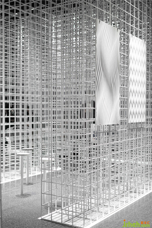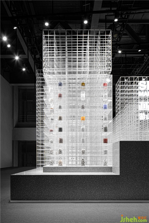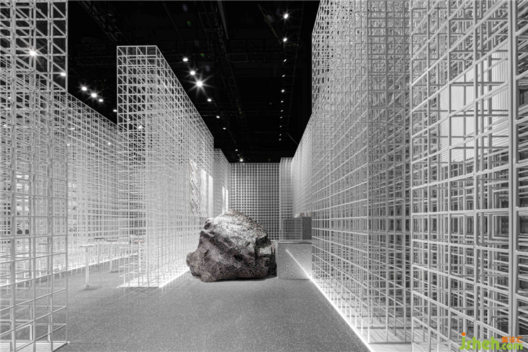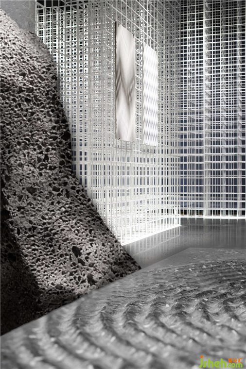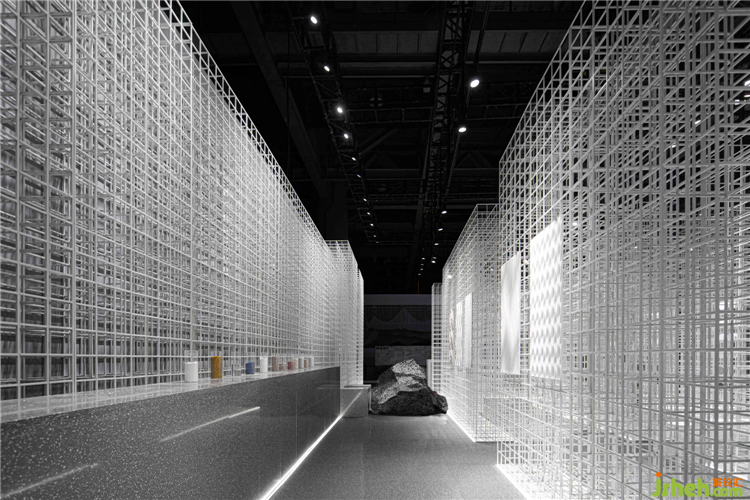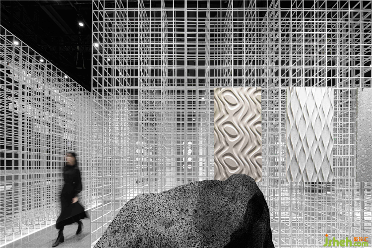 展厅设计成为一种特殊的建筑营造。随着矩阵形体的显现,出现一种明晰的逻辑。一隐一显间,技术与艺术相互契合,和画王大理石所表现的精神内核一样,“自然之理“是技与理的结合。