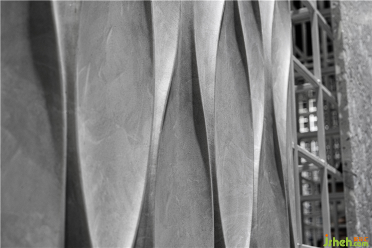 结构元素均质分布在一片充满视觉性的并置中,石的意向被蓦地凸显出来。融入矩阵之中的骨料以不经意的姿态展现出来;浮于网格之上的石板以流动的质感和肌理被罗列而出,背景所提供的秩序与结构,更有助于体验人造石细节处理上的微妙变化。