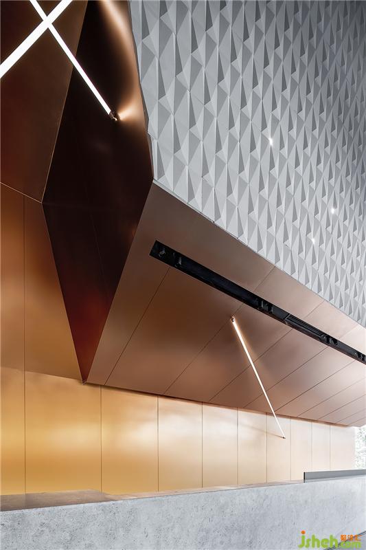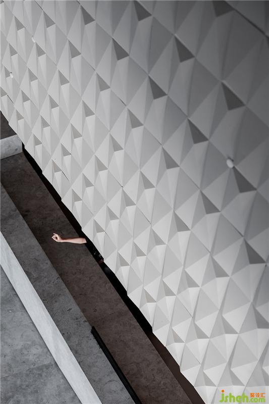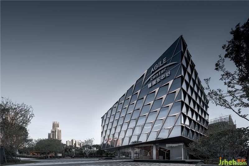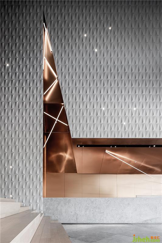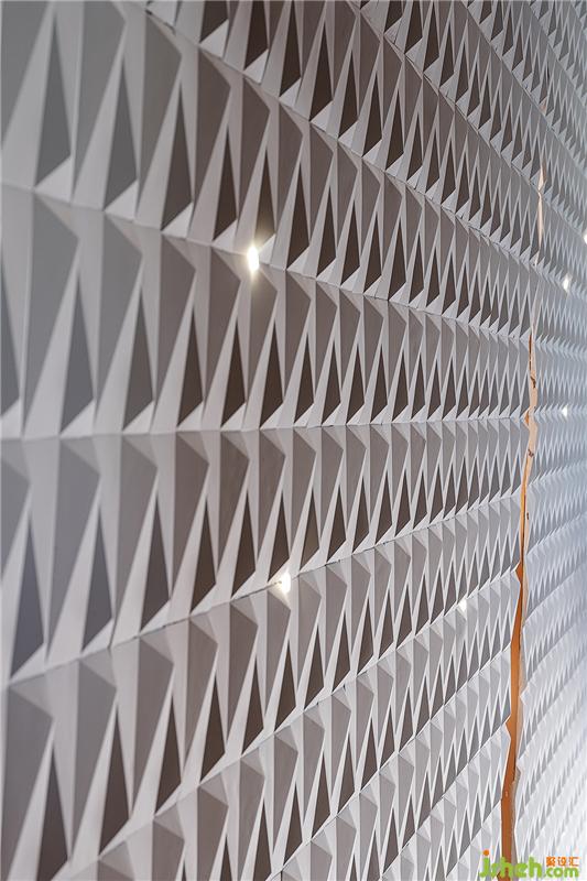 整个售楼部外观以半通透的体块阵列形式塑造,为地块带来明亮的律动。与此相呼应,设计师以钻石的切割方式为灵感,将其带入空间形式的塑造,与光配伍,琢磨出另一种璀璨广州销售中心设计。