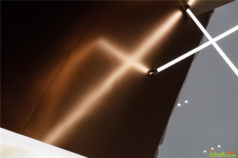 入口处空间体块的动势趋向一种自然的“开裂”,和传统主观的装饰相比,这种充满张力的构成式场景有种主动的吸引力广州销售中心设计。
