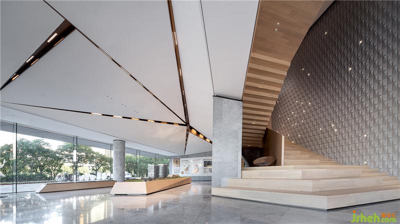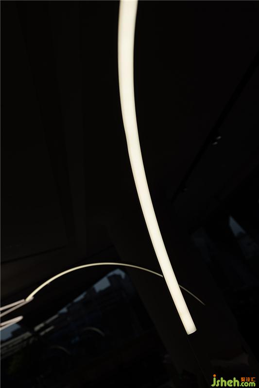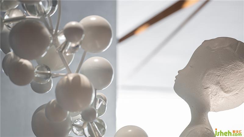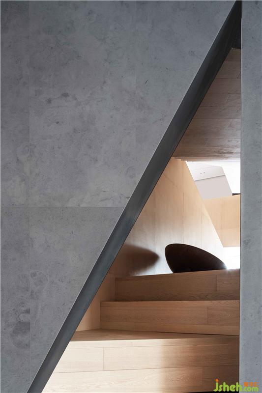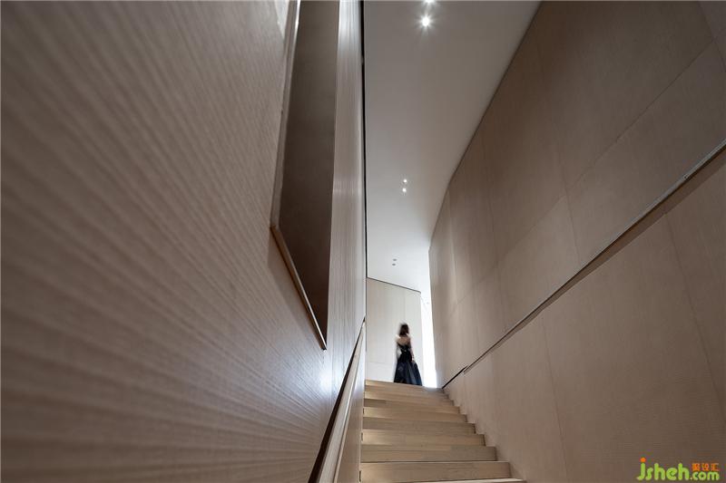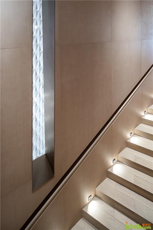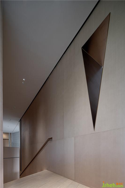晶体结构的切割方式决定了其璀璨程度。在去往二层的空间中,从顶面到墙面的关系是一种结构的穿插,宏观而言,精准的切割方式让每一个形体的变化带出边界的光芒。