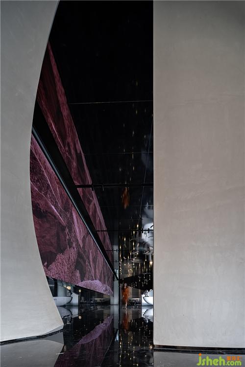粗糙的白色表皮和光滑的黑色石材之间,是黑与白的对峙包容,如东方文化中的混沌初开,太极苍穹,星辰万古……