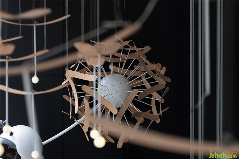 装置手持的蒲公英和竹蜻蜓灯连接成一个动态的画面,由展厅外延伸入内,连接起两个空间,有效拓展了视觉深度。