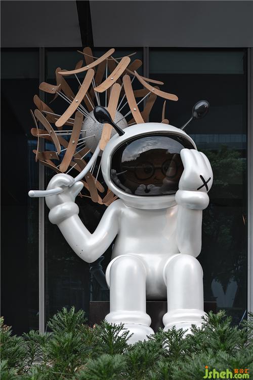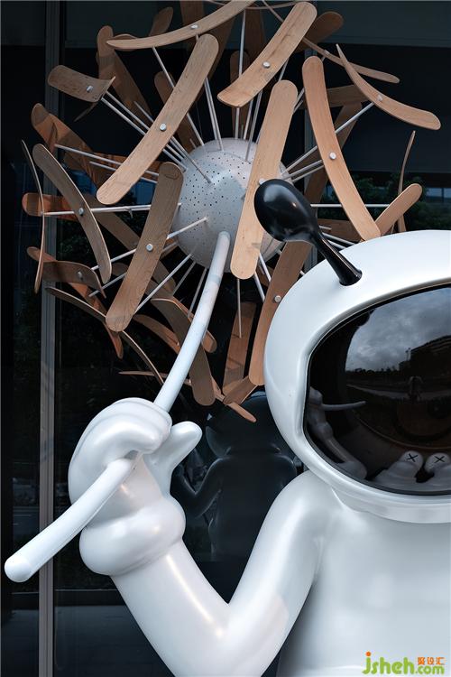 值得一提的是,项目落成不久就与今年首个超强台风“烟花”不期而遇,摧枯拉朽之中,展厅外的“主角”却端坐风中托腮沉思,纹丝未动……