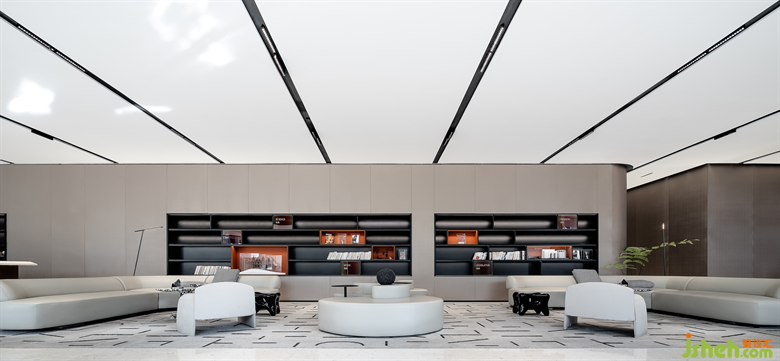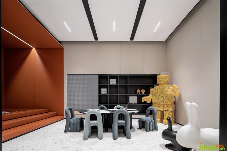 广州销售中心设计洽谈区域整个平面布局通透舒展,阳光透过玻璃在明暗之间和阅读区域共同演绎光明和阴翳的暧昧关系。儿童区前的小剧场将空间功能性发挥出来,在人文关照方面给予多重演绎。