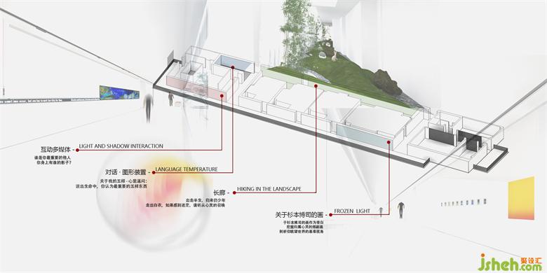犹如一个关于城市的寓言。在一层,天光如诗歌般凝炼,将沙盘区的时空凝固,天井将其导向一种向上的姿态。