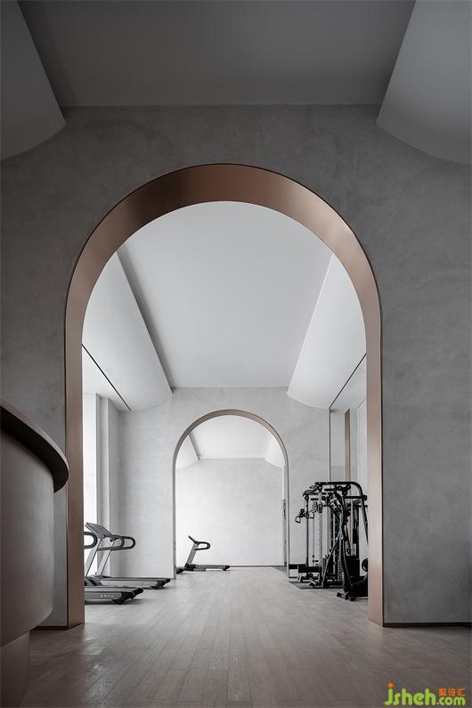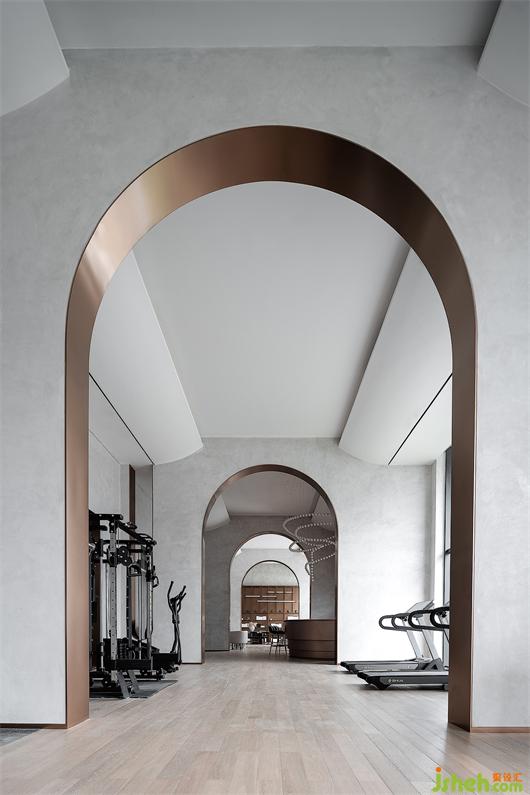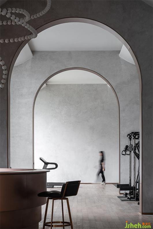空间从半圆形的服务吧台向两端延展,创造着静谧的时间流与能量流。重复的拱门制造着空间的隔断关系,并在视觉层次的递进与空间秩序的构建上提供着可能性。
